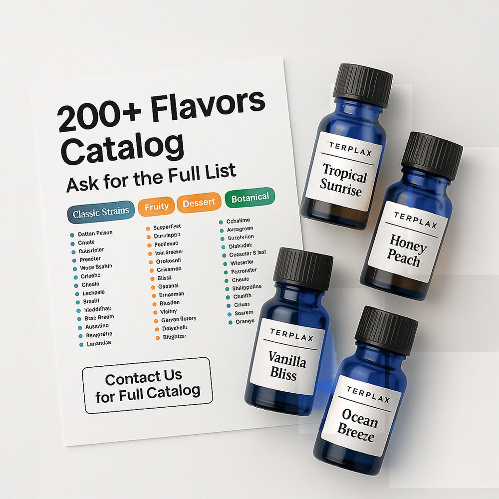 A naturally derived, bold-berry terpene blend centered on wild/Bing cherry—juicy and vivid—with a classic almond/cherry-kernel accent, light cranberry brightness, a hint of cola-spice, and a clean light-cooling finish. True-to-fruit clarity with natural sweetness. Built for consistent aroma work, small-batch R&D, and scale-up production.